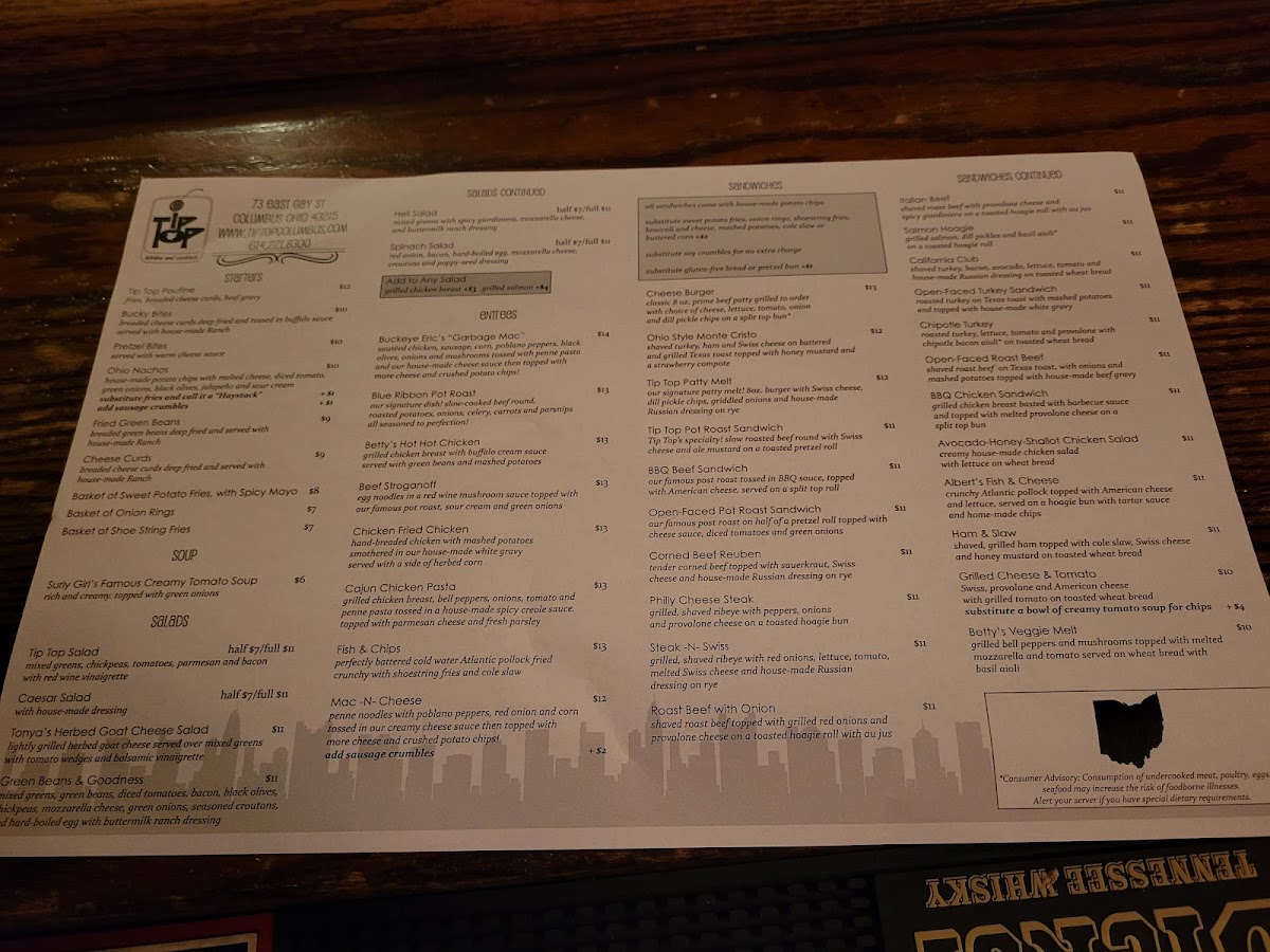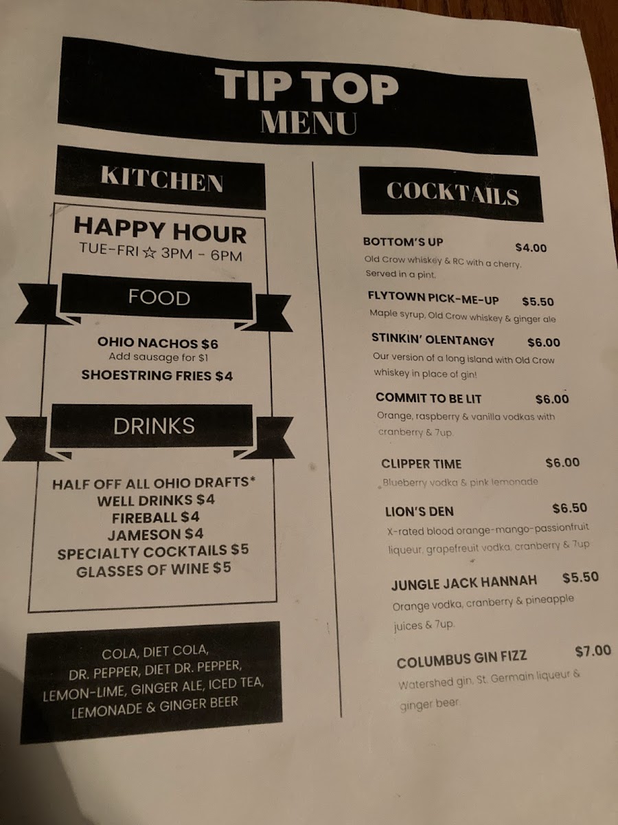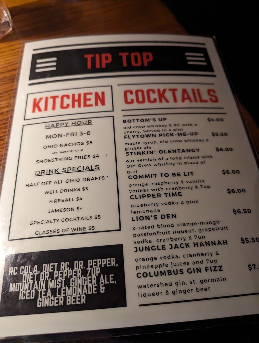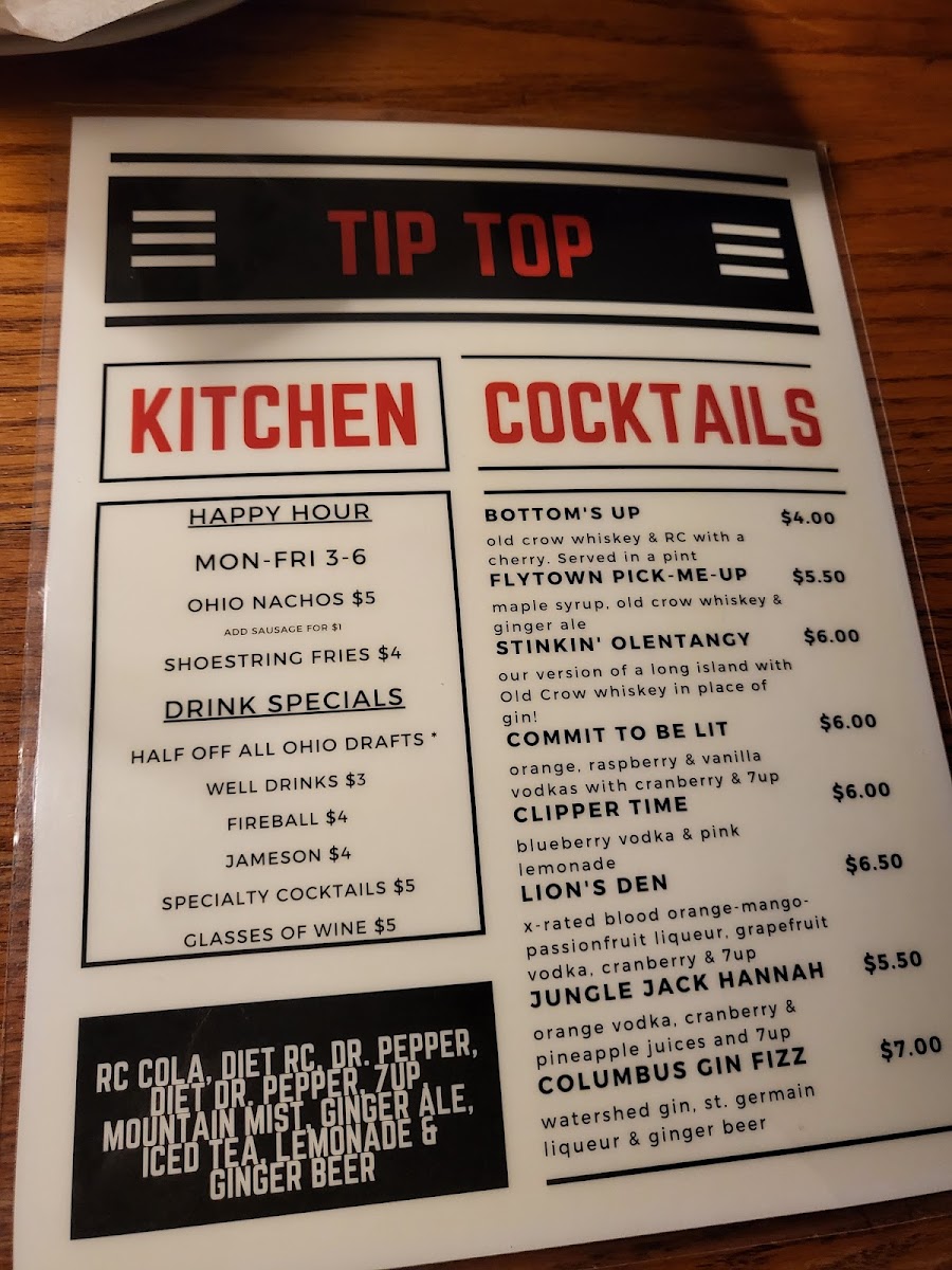 Welcome to Tip Top Kitchen & Cocktails, a hidden gem nestled in the heart of downtown Columbus, Ohio. Located at 73 E Gay St, this bar offers a twist on the classic pub experience with a diverse menu that will entice both locals and visitors alike.